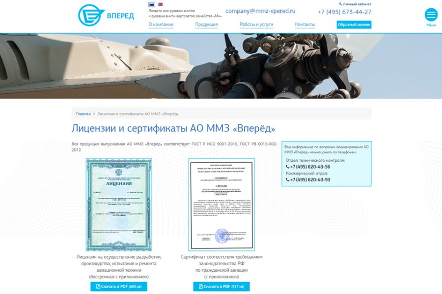 реквизиты и сертификаты, которыми компания располагает;