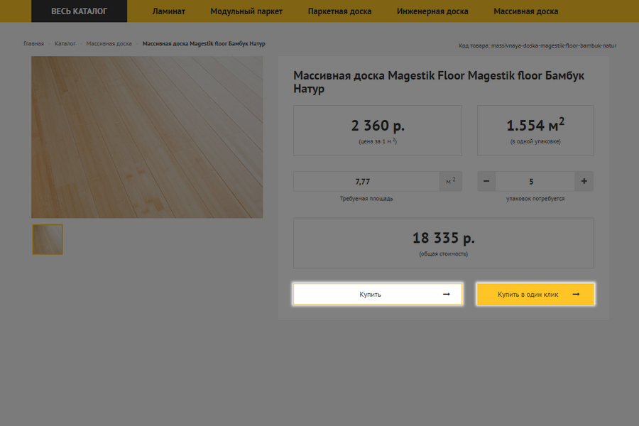 Хорошо, если на сайте имеется возможность перейти в неё с любой страницы, равно как купить в одно нажатие или с полноценным оформлением заказа.