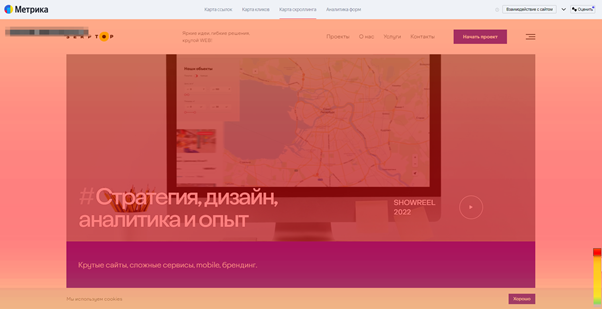 Этот инструмент предназначен для сбора статистики по посещению ссылок на сайте. На карте они все отмечены разными цветами. Наводя на каждую курсор, можно увидеть, сколько раз на них нажимали и какова доля этих кликов относительно остальных ссылок на ресурсе.