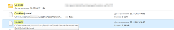 Расположение cookie у Яндекс.Браузера: C:\Users \Имя_пользователя \AppData \Local \Yandex \YandexBrowser \User Data \Default\, файл так и называется «Cookies».