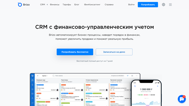 CRM от Brizo поможет в управлении продажами (от автоматизации поступления заявок и расстановки задач между менеджерами до проектирования мультиворонок), предоставит различные возможности по финансовому учету организации и аналитике процессов.