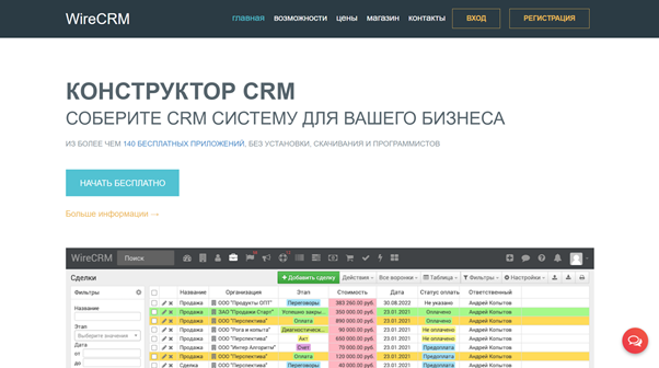Конструктор CRM предлагает множество функций на выбор: планировщик, учет клиентов, продаж, товаров и услуг, интеграция телефонии, почты, выставление счетов, формирование предложений и актов, учет финансов, интеграция с сайтом, автоматизация бизнес-процессов, запись клиентов на услуги, аналитика и отчеты, файловое хранилище, управление персоналом и прочее.