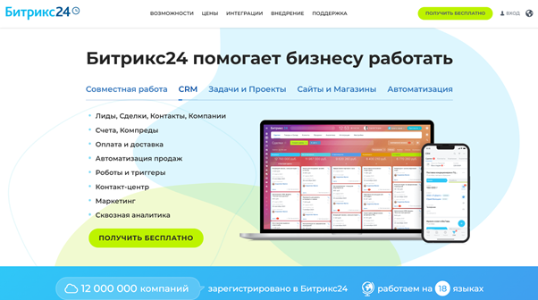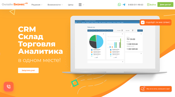 Среди возможностей Бизнес.ру: принятие заявок клиентов с различных каналов, запуск воронки продаж, статусные и маркетинговые рассылки, хранение истории взаимодействия с клиентами и т.д.