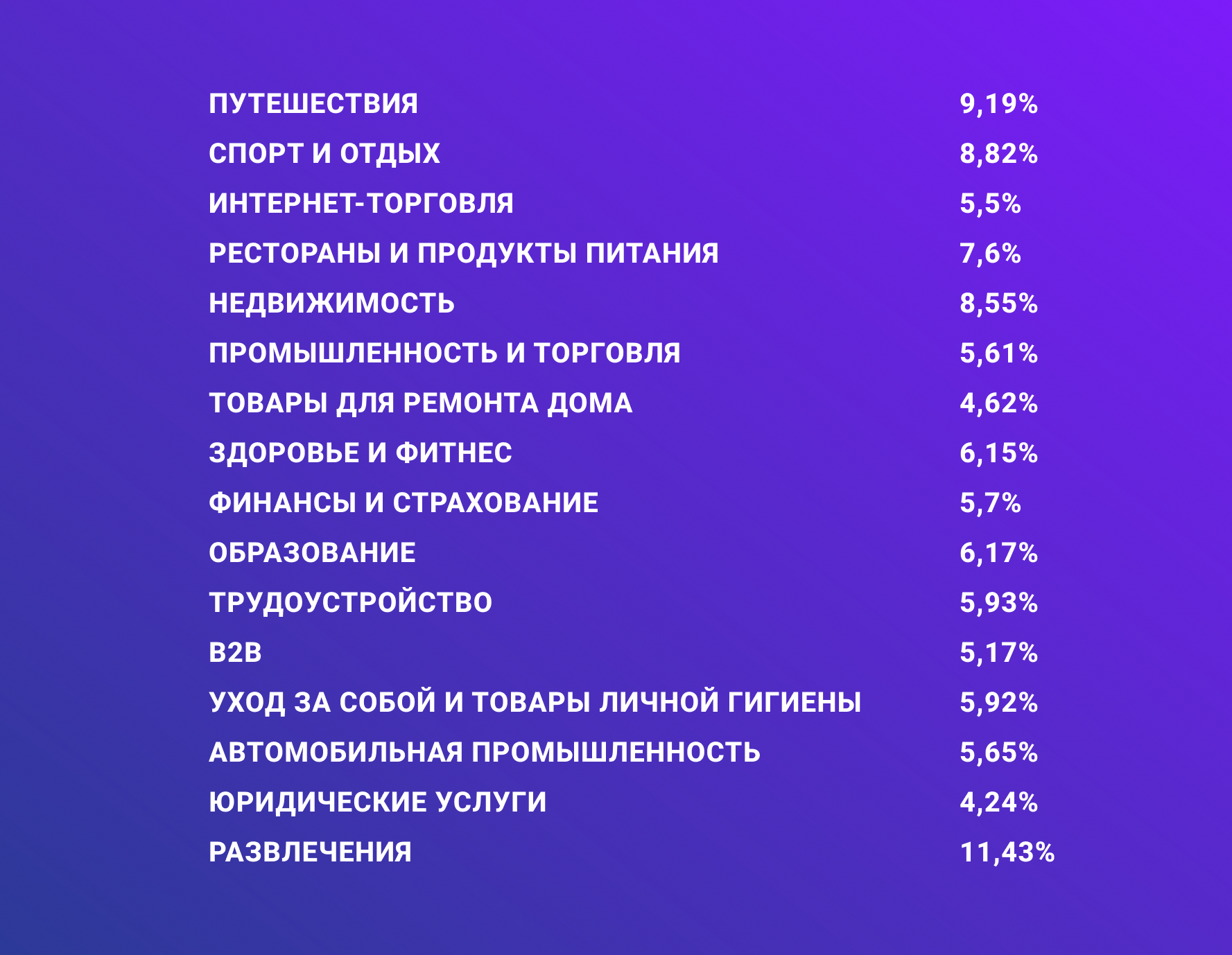 По данным исследований CXL норма CTR по отраслям выглядят так:
