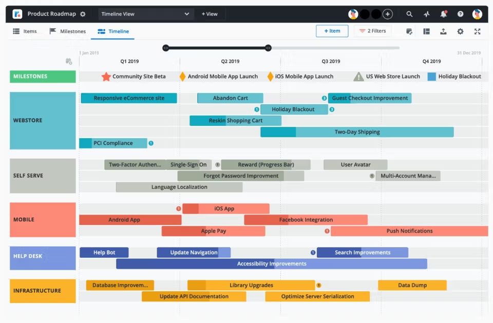 Примером roadmap может быть план по выпуску нового продукта. Вместо того, чтобы расписывать детальные задачи каждого сотрудника, в карте нужно указать основные шаги — разработка, тестирование, запуск, маркетинговая кампания. Так все участники смогут понимать глобальные цели и стремиться к достижению общего результата.