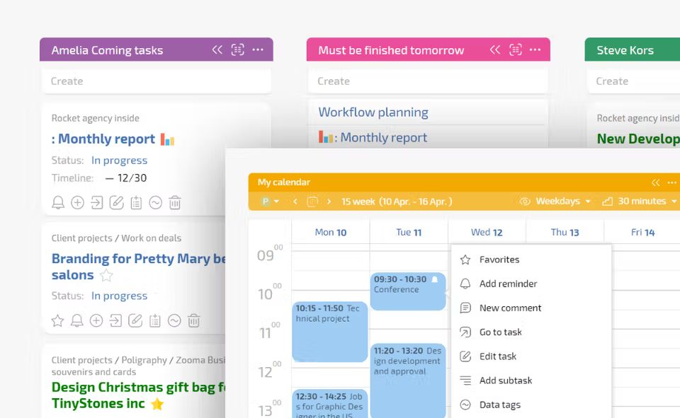 Если для работы требуется наглядная визуализация стадий и детализированные отчеты, стоит рассмотреть Monday.com или Planfix, которые предоставляют гибкие возможности настройки дашбордов и визуализации прогресса. Monday.com особенно удобен для регулярной отчетности и работы с KPI, а Planfix предлагает дополнительные модули аналитики и детальные дашборды для мониторинга показателей.