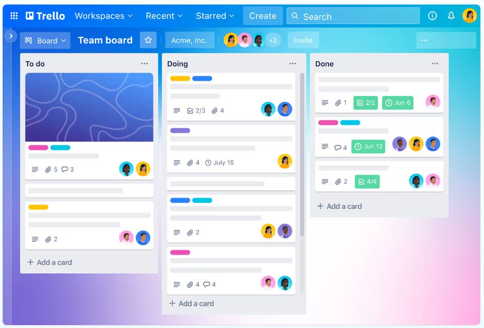 Trello — это бесплатный и интуитивно понятный сервис, оптимальный для небольших команд, стартапов и малых начинаний. Он организует задачи с помощью досок и карточек, что упрощает управление обязанностями и отслеживание выполнения. Благодаря гибкости и простоте, бесплатная версия часто подходит для небольших начинаний. Платная версия (от $5 в месяц) добавляет функции автоматизации и интеграции с Google Drive, Slack, Jira и другими сервисами.