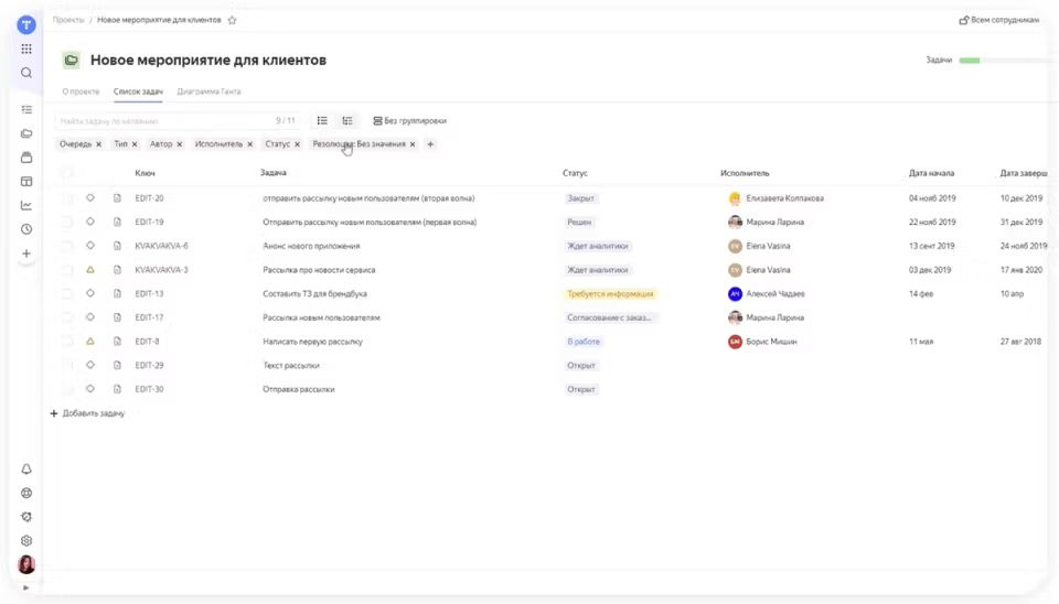 Яндекс.Трекер — это российский инструмент для управления проектами, тесно интегрированный с экосистемой Яндекса. Трекер подходит для ведения roadmap, назначения ответственных и мониторинга выполнения. Этот сервис особенно удобен для компаний, работающих в России, благодаря соответствию российским требованиям и удобству для управления внутренними и внешними задачами.