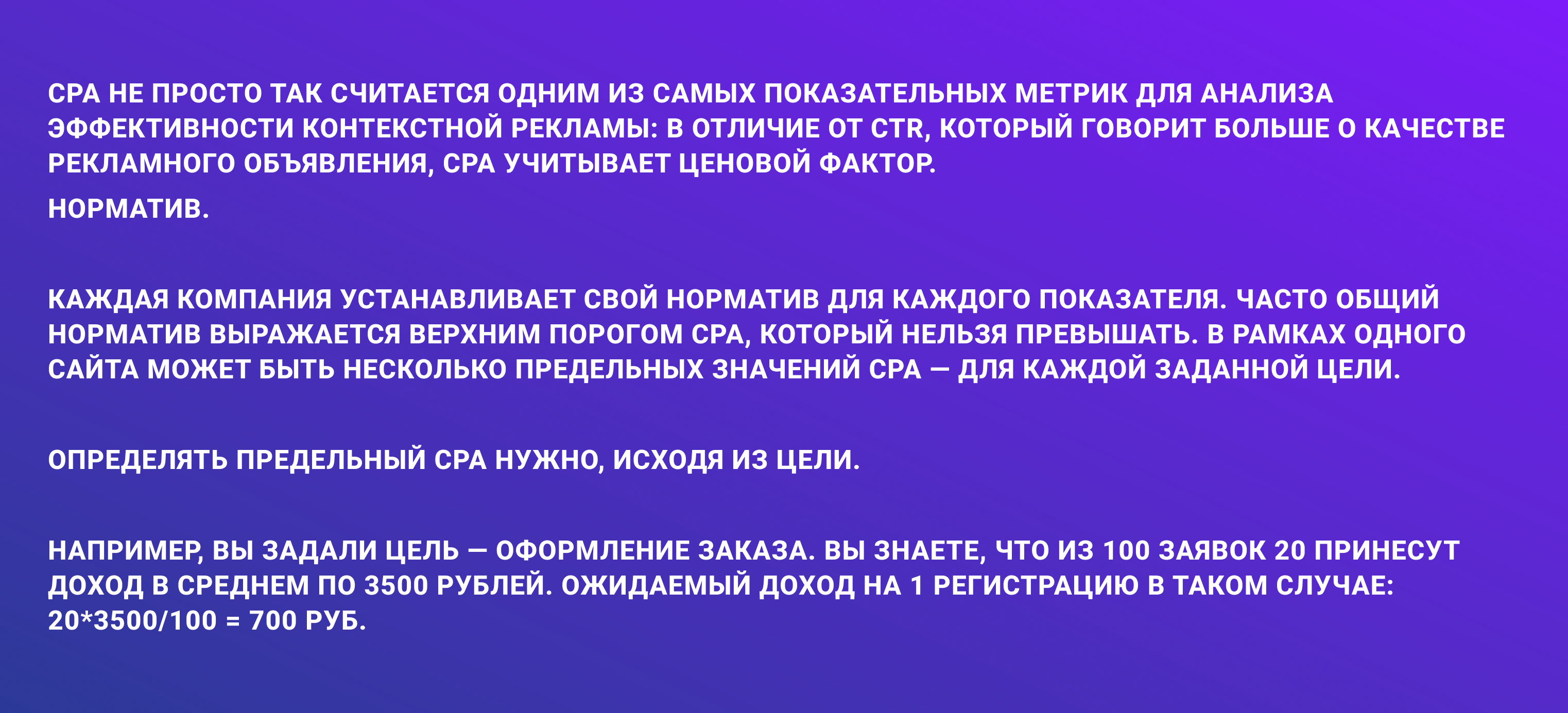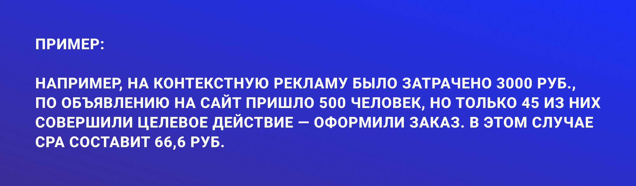 CPA = расход на рекламу/количество выполненных целевых действий,