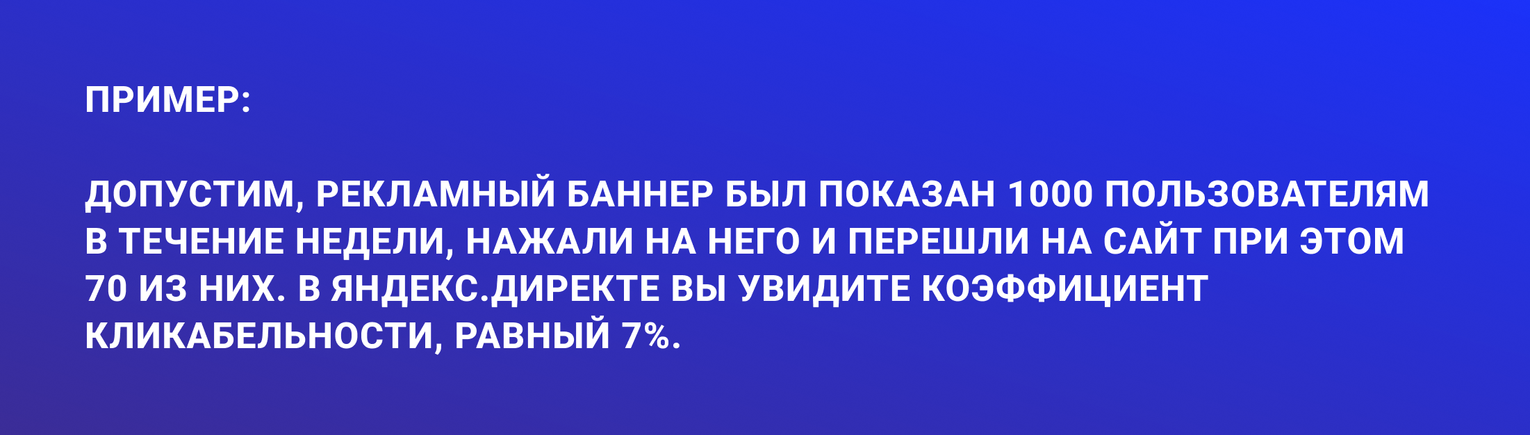 Под показами понимается количество раз, когда пользователь увидел рекламу, а под кликами — сколько раз он на нее нажал. На основе этих показателей вычисляется следующая метрика.