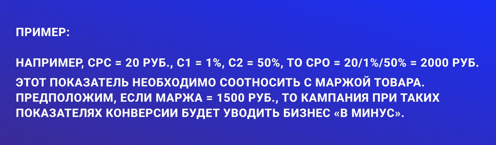 CPO (Cost per Order) = расходы на рекламу/количество оформленных заказов