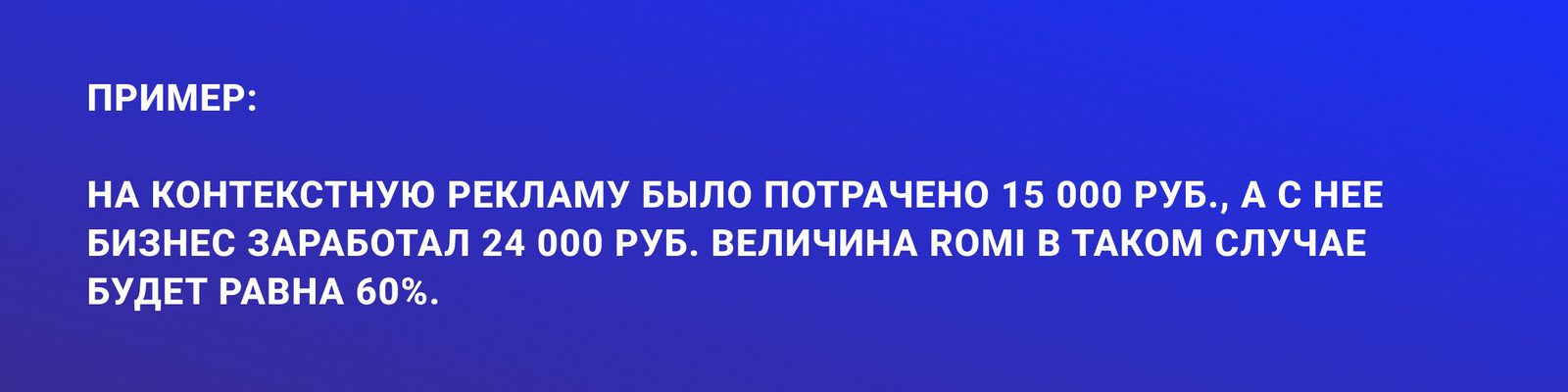 ROMI (Return of Marketing Investment), или коэффициент возврата инвестиций в маркетинг — метрика, созданная на основе ROI и более подходящая для анализа эффективности контекстной рекламы (по сравнению с ROI).