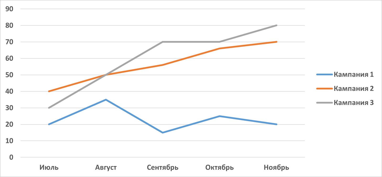 - Сравнение с помощью графиков — один из самых простых и очевидных способов сравнения любого показателя.