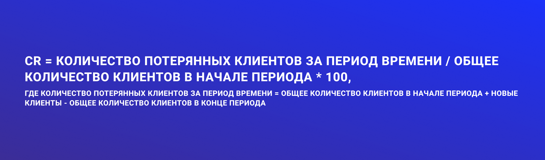 В количество потерянных пользователей вы можете включить тех, кто ушел от вас по причине смены места жительства, финансовых или личных проблем. Но не будет лишним упомянуть, что такие группы клиентов вам все равно бы не удалось удержать. Считать CR с ними или без них — выбор, который каждый бизнес принимает индивидуально.