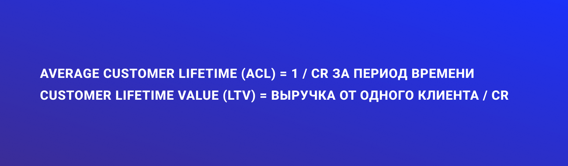 ACL — это средняя продолжительность жизни клиента. Разделив 1 на показатель churn rate вы сможете узнать, сколько недель, месяцев или лет один клиент в среднем будет оставаться с вами.