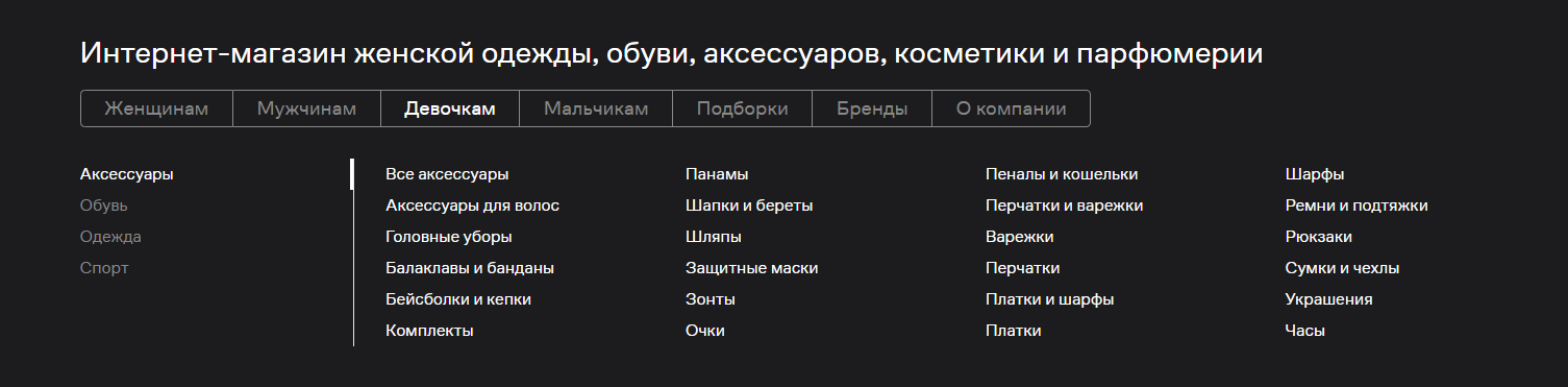 В футере Lamoda есть ссылки на категории товаров, что не только помогает пользователям с навигацией, но и положительно сказывается на SEO за счет улучшения внутренней структуры ссылок.