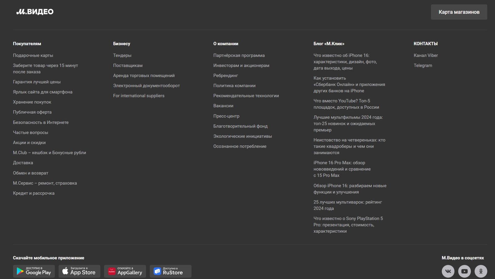 Если компания предлагает мобильные приложения, подвал — идеальное место для размещения ссылок на их скачивание.
