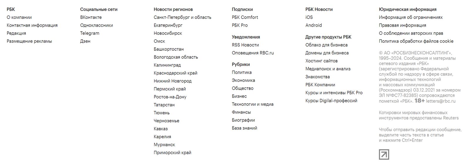 На сайте Сбербанка футер содержит ссылки на основные разделы услуг, информацию о банке, а также разделы с финансовыми новостями и важными документами, что помогает пользователям быстро находить нужное.