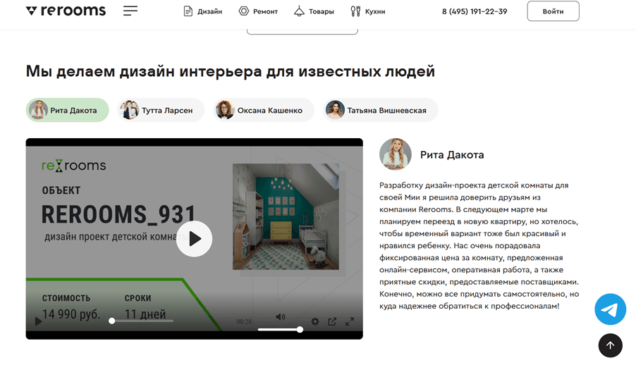 - вставляются примеры реализованных решений с фотографиями, ценами и сроками