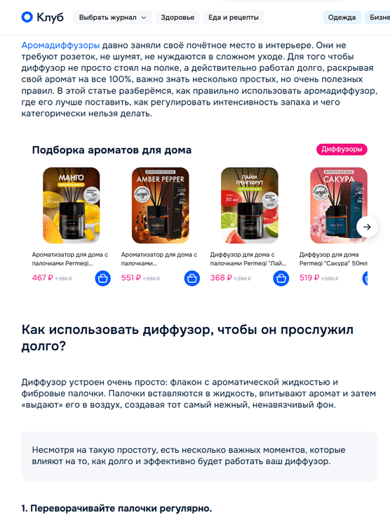 Реклама диффузоров в статье предлагается органично, не бросается в глаза, и расположена «в тему».