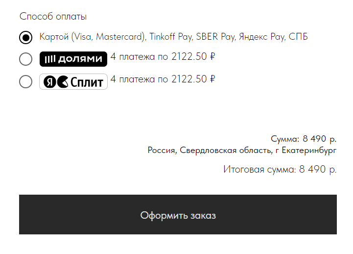 Кнопки перехода к оплате или добавления в корзину выделены контрастно, чтобы пользователь не потерял их среди другой информации.