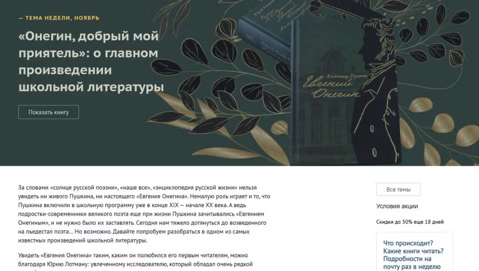 Внутри статьи блога Лабиринта два CTA. Первый — кнопка «Показать книгу» перед началом материала.