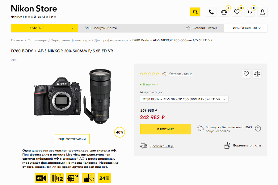 Фотокамеры мы покупаем не каждый день, а потому выбору такой покупки уделяем немало времени, изучая характеристики и преимущества различных моделей и желая узнать о них побольше. Оформление карточки товара в официальном интернет-магазине “Nikon” радует своей полноценностью и продуманностью.