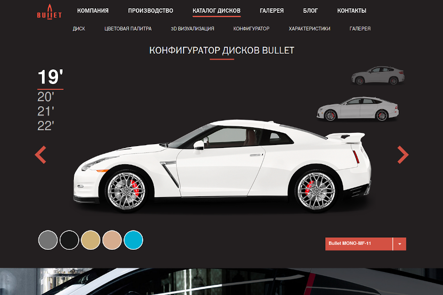 Конфигуратор дисков позволяет выбрать их модель, цветовое решение, диаметр, а также тип кузова автомобиля. Это позволяет покупателю предварительно прикинуть, как диски будут выглядеть на его машине.