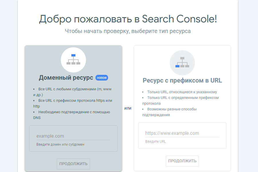 Интерфейс консоли «Гугл Вебмастер» интуитивно понятен: для добавления определённого ресурса достаточно выбрать кнопку раскрытия выпадающего меню (маленький перевёрнутый треугольник) и в нём нажать кнопку «Добавить сайт». После этого нужно указать адрес сайта и нажать «Продолжить». Система предложит подтвердить право на управление, и после получения соответствующего сообщения вы получите доступ ко всем данным сайта.