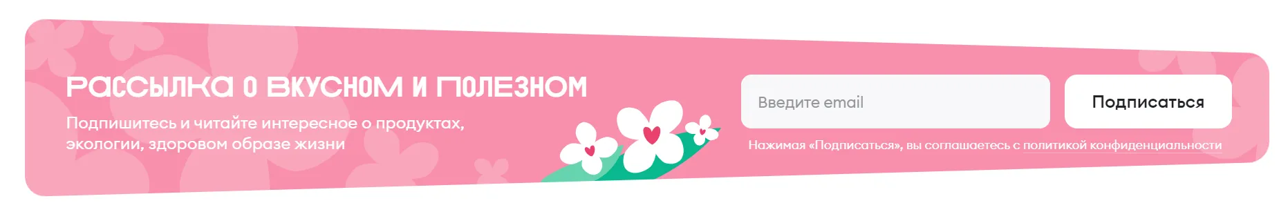 Для подписки на рассылку ВкусВилл запрашивает только email. Других полей для заполнения в форме нет, и это не отвлекает и не путает пользователя.