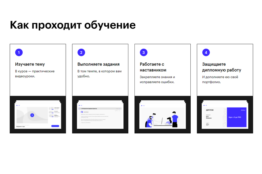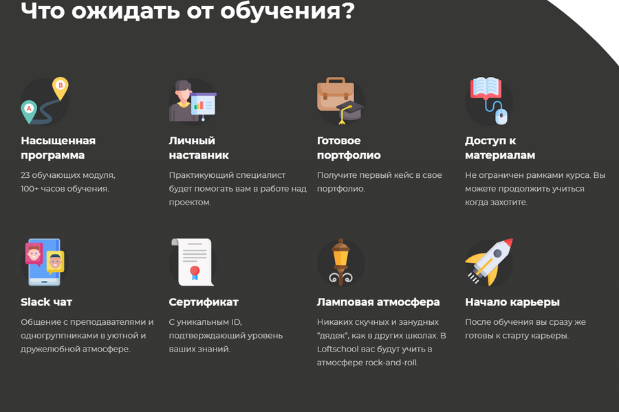 По окончании курса у последних имеется в своём распоряжении собственное портфолио с реальными проектами, благодаря которому они смогут найти перспективную работу.