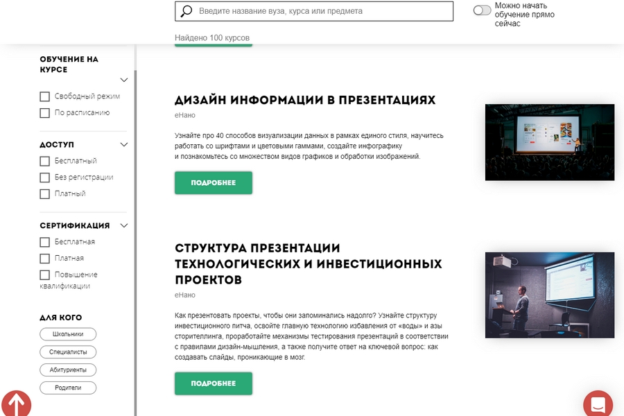 По каждому из них представлены десятки курсов, и это не преувеличение!
