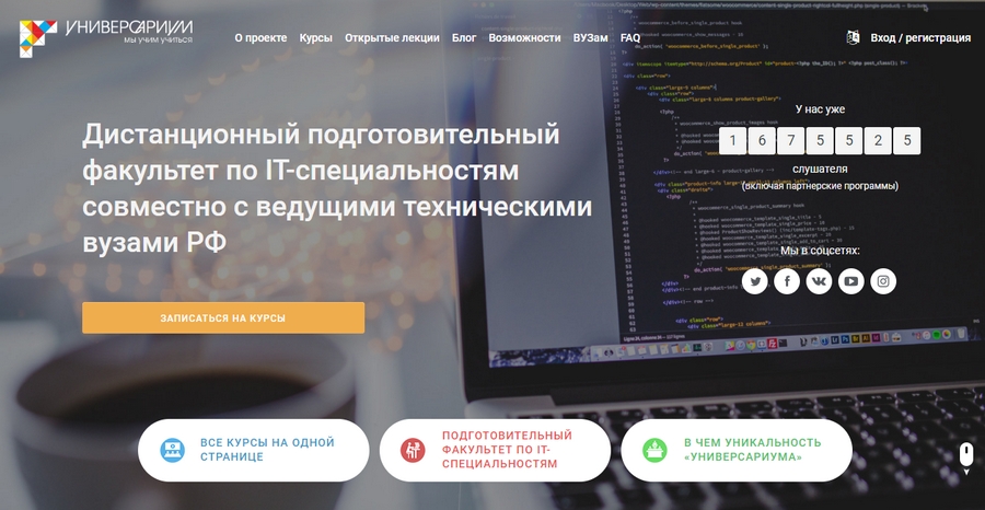 На платформе представлена масса полезной информации на самые разные темы, начиная с обеспечения компьютерной безопасности и заканчивая различными направлениями философской науки. Отличительная особенность –наличие программ для школьников. Для облечения поиска на сайте имеется фильтр, который позволяет подобрать желаемое исходя из таких параметров, как доступ, сертификация, свободный режим или занятия по расписанию.