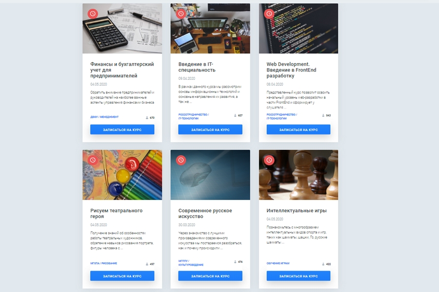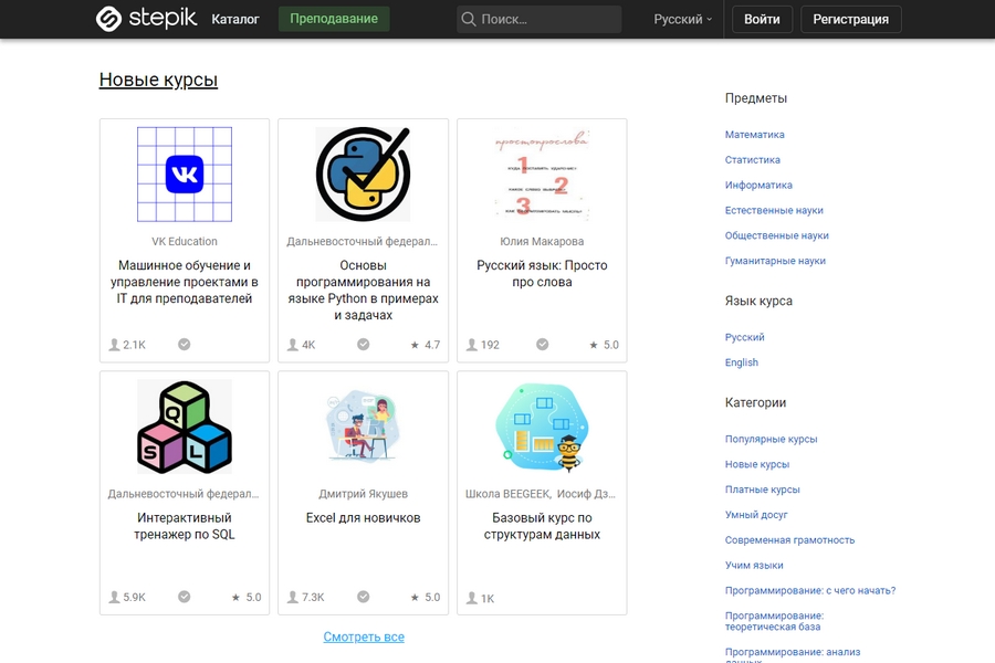 В общей массе на платформе представлено около ста курсов. Вот лишь некоторые из них: