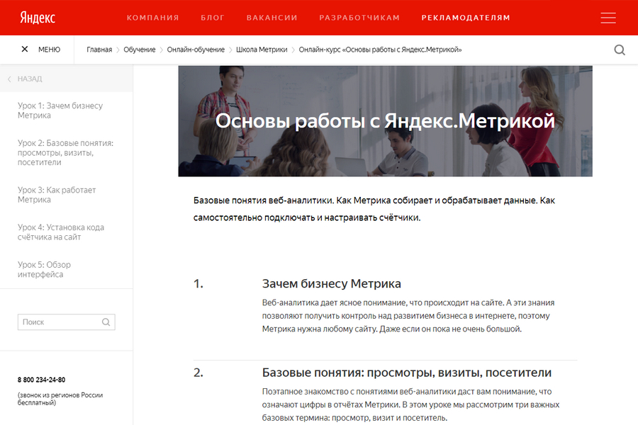 Курс включает в себя восемь видеоуроков, посвящённых основам интернет-маркетинга. Каждый урок – это мастер-класс с дополнительными материалами. По завершении студент получает сертификат о прохождении, а также знания, которые может применять на практике.
