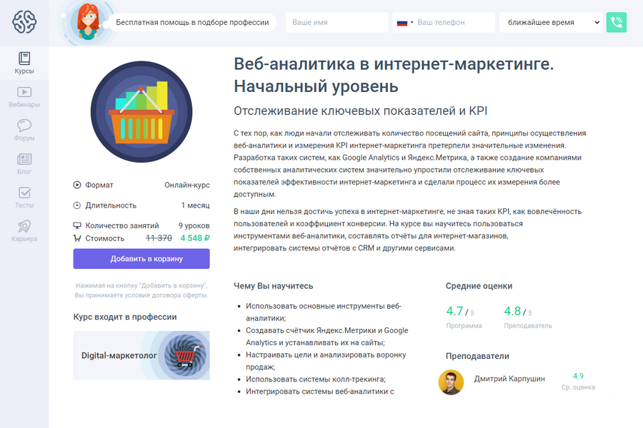 Курс «Интернет-маркетолог. Free» от компании “GeekBrains”