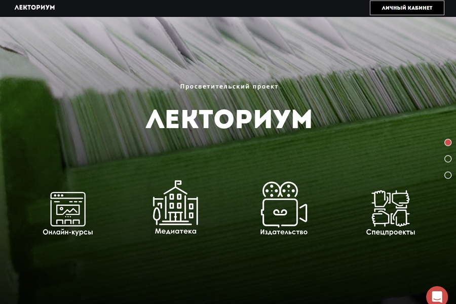 Образовательный проект «Лекториум» реализован в виде платформы, на которой всем желающим доступны открытые бесплатные онлайн-курсы. Кроме того, в него входят специализированное издательство и самый крупный русскоязычный видеоархив лекций. Проект активно сотрудничает с более чем ста партнёрами, среди которых Министерство образования и науки Российской Федерации, высшие учебные заведения, педагогические ассоциации.