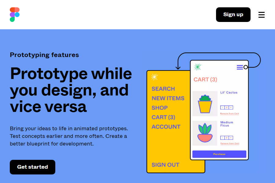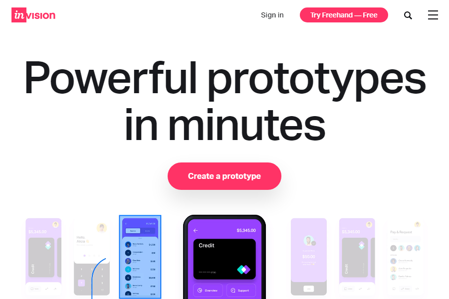 Данный инструмент для прототипирования веб-сайта идеален и в качестве самостоятельного решения, и в качестве дополнения приложения “Figma”. Из него можно перенести дизайн в “InVisionStudio”, добавив интерактива и анимаций. Другие преимущества: