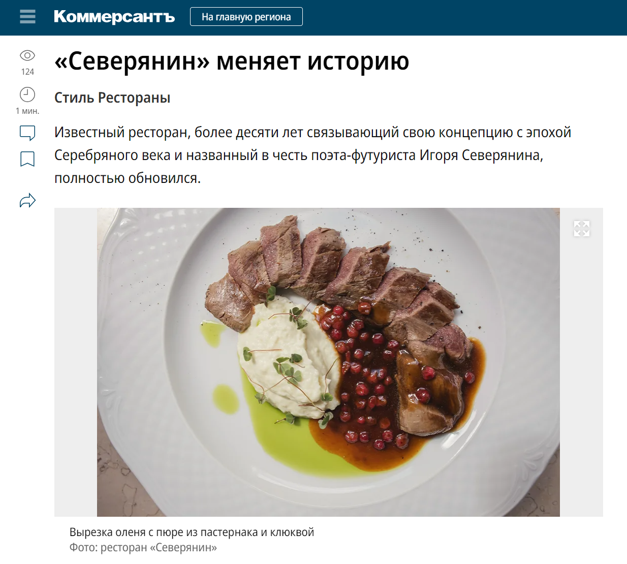 Статья об изменении концепции заведения на «Коммерсантъ»