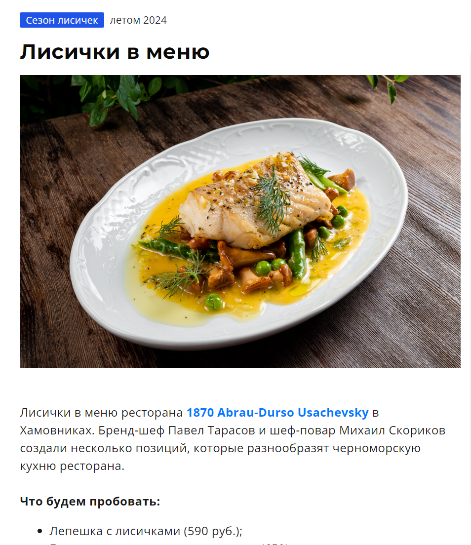 Публикации в авторитетных интернет-изданиях помогают повысить узнаваемость бренда и привлечь новых клиентов. Рассмотрите возможность размещения на тематических платформах, к примеру, Afisha.ru, Restorating.ru, Timeout.ru, Kommersant.ru и пр.