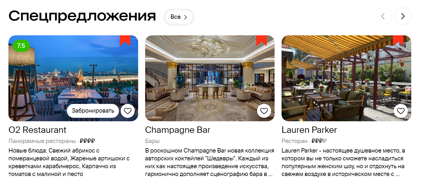 Рестораны могут публиковать обновления меню или специальные предложения на Afisha.ru.