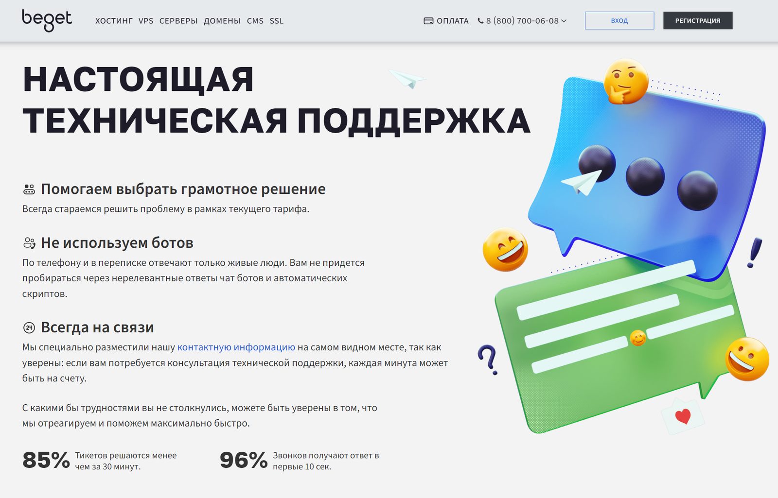 - Надежность не оставляет сомнений: 99,9% времени без сбоев, регулярное резервное копирование и защита от DDoS-атак.