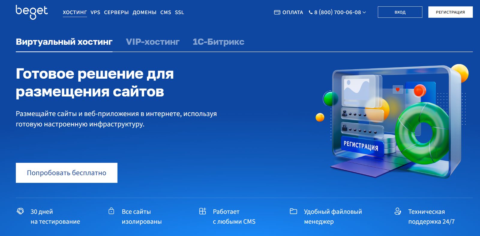 Beget — российский хостинг-провайдер, обеспечивающий работу на виртуальном хостинге, VPS и выделенных серверах, а также предоставляющий такие дополнительные услуги, как резервное копирование и SSL-сертификаты.