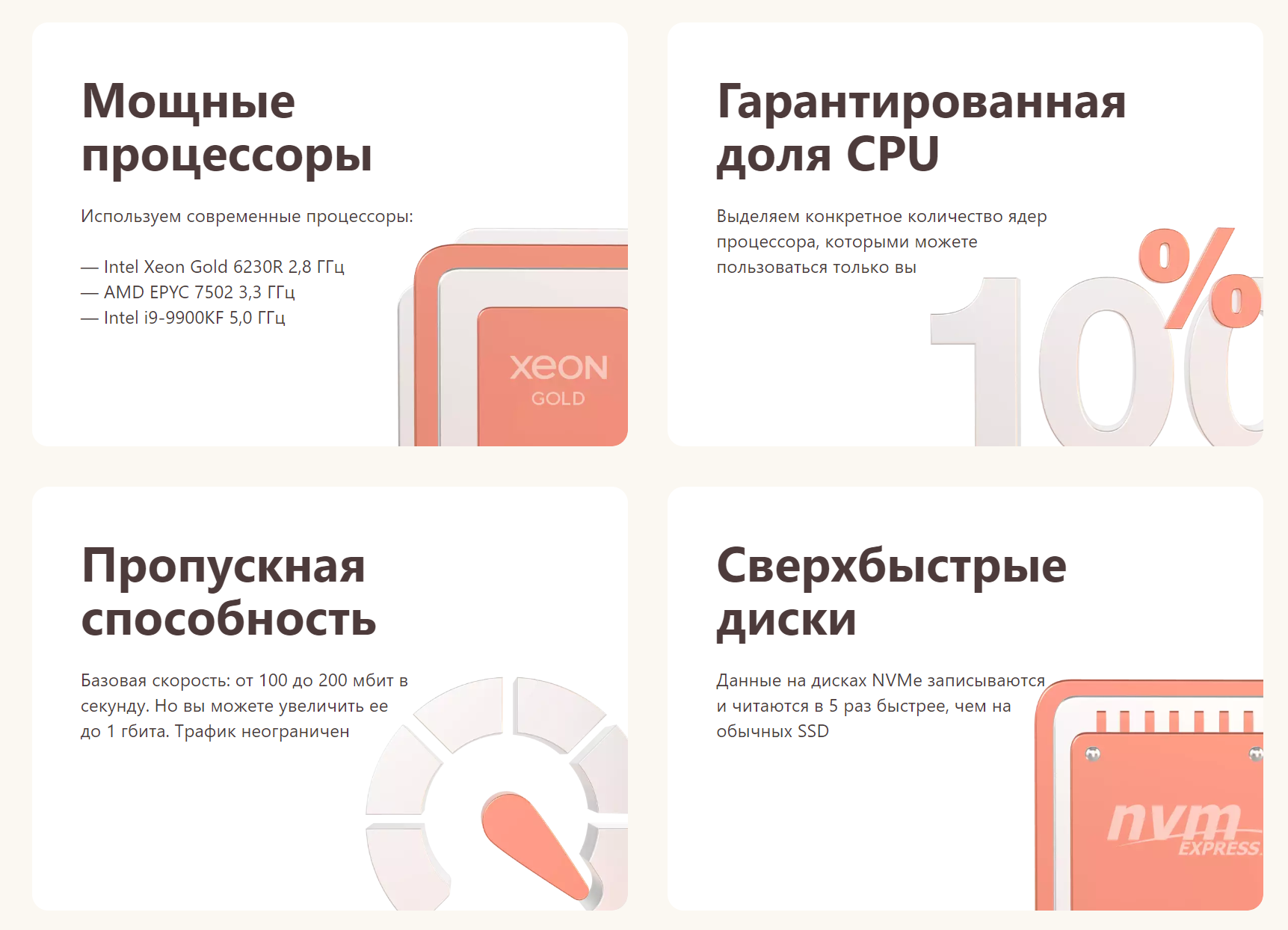 - Производительность отличная — за что спасибо современным серверам и объемным SSD-хранилищам.