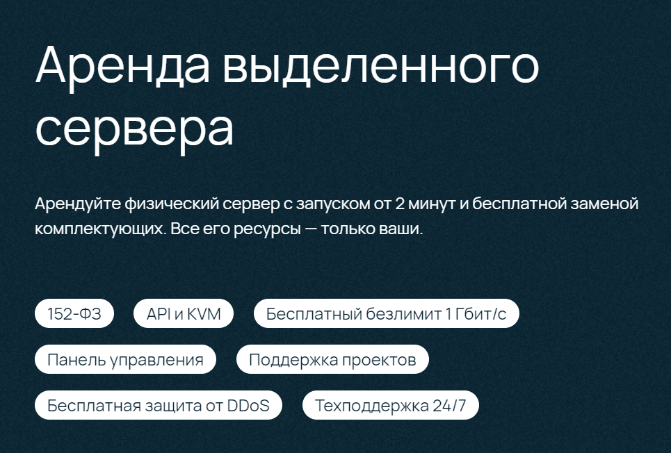 Выделенные серверы: множество готовых решений от 5310 рублей в месяц, плюс кастомные сборки на индивидуальных условиях.