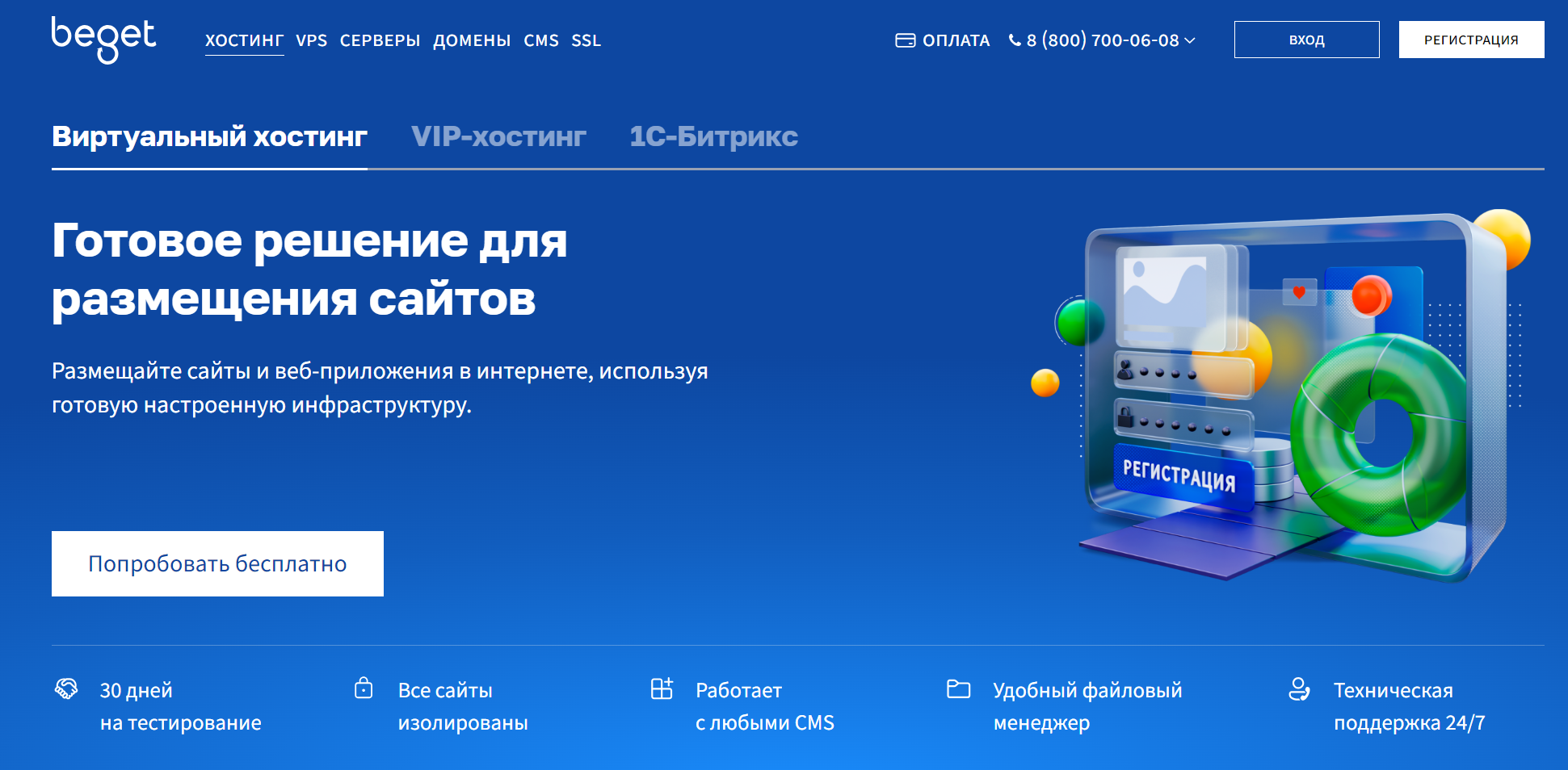 Beget — российский хостинг-провайдер, обеспечивающий работу на виртуальном хостинге, VPS и выделенных серверах, а также предоставляющий такие дополнительные услуги, как резервное копирование и SSL-сертификаты.