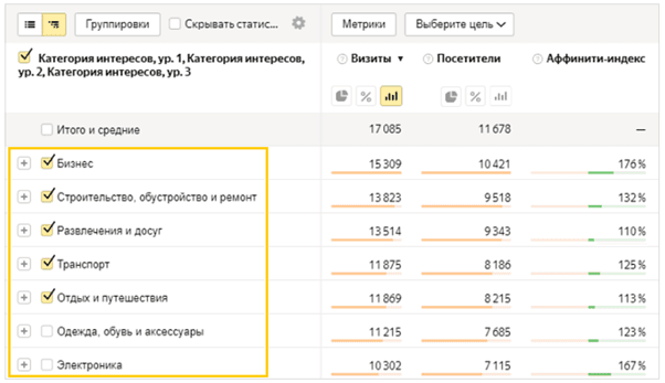 Анализируя трафик, полезно разделять ЦА по таким критериям, как: