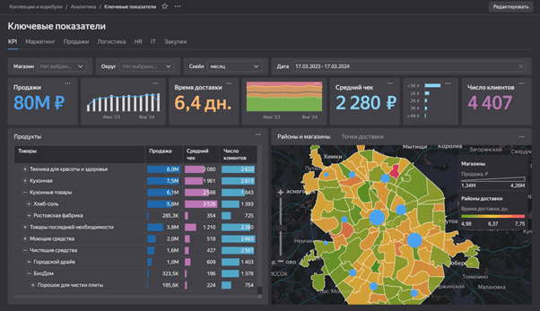 Чтобы информация была удобной для анализа, данные структурируют в таблицы, графики и дашборды. Например, Yandex DataLens позволяет визуализировать данные в реальном времени, строить отчеты по сегментам аудитории. Альтернативные сервисы для работы с данными — Metabase, Apache Superset.