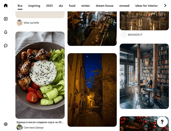 Всем знакомый Pinterest интересен как раз своими возможностями персонализации. Вы можете настраивать предпочтения вручную, а можете просто создавать доски и добавлять на них интересующие «пины» — новые будут отобраны из тех, что соответствуют вашим увлечениям и просмотрам. Примените похожий механизм на своем портале, чтобы дать стимул посетителям остаться и регулярно возвращаться. Источник: https://ru.pinterest.com/