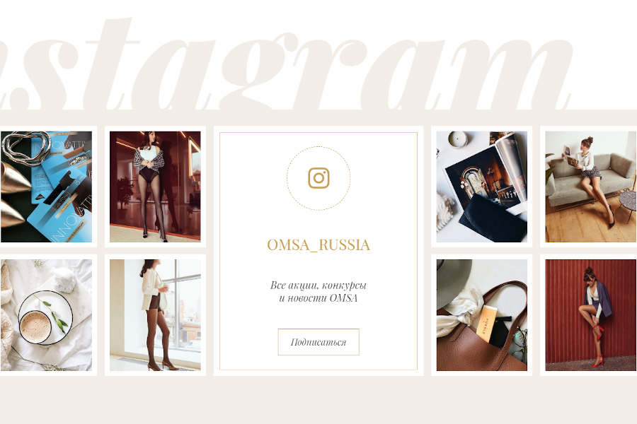 Опять же, фишка с привлечением потенциального клиента на страницу бренда в соцсетях через лендинг не нова. Разрабатывая одностраничник для итальянского бренда колготок “Omsa”, мы попробовали уйти от стандартных решений в виде обычных иконок, а создали красивый блок.